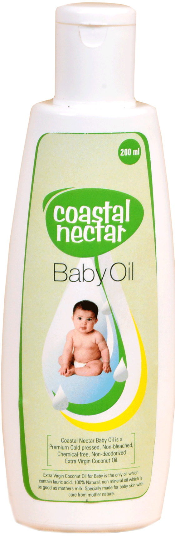Coastal Nectar Baby Oil is a premium cold pressed Non-bleached, Chemical-free, Non-deodorized Extra Virgin Coconut Oil.